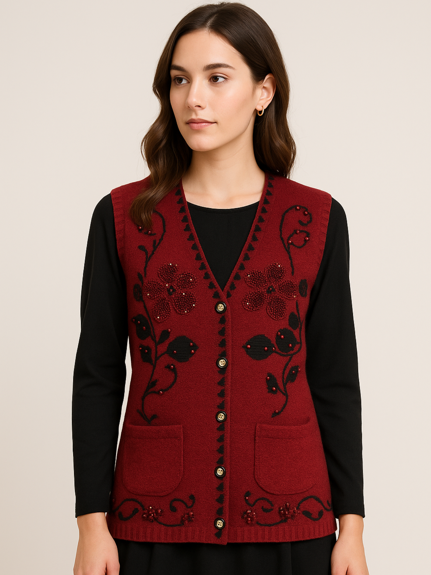 Embroidered Sleeveless Sweater for Women | Elegant Winter Fashion Layer